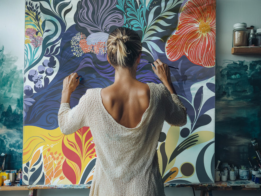 Lígia Varella é uma artista visual cuja obra transita entre o orgânico e o intuitivo, explorando as formas fluidas e sensoriais da natureza de baixo d’água. Trabalhando com tinta acrílica e técnicas de colagem, Lígia cria composições que parecem pulsar com vida própria, evocando corais, raízes, folhas, ondas e formas celulares em permanente movimento.