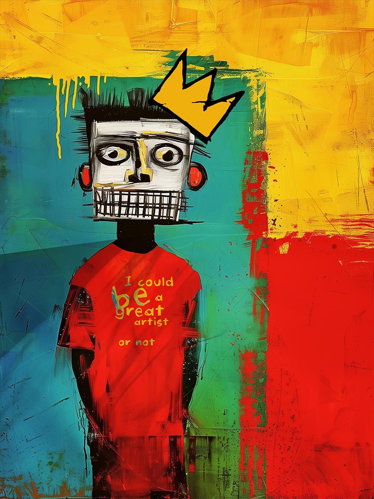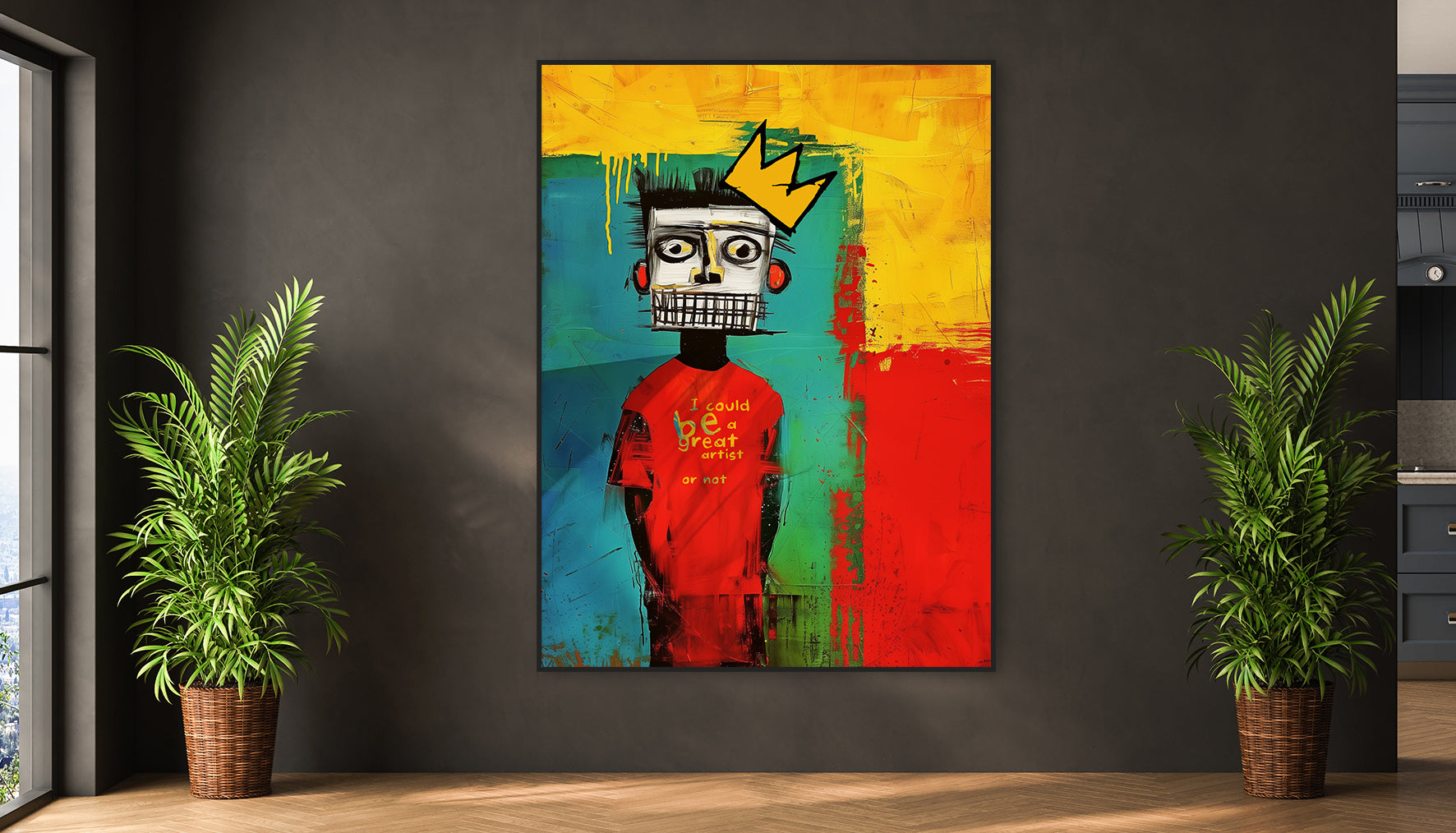 Este Auto Retrato é uma homenagem vibrante ao estilo único de Basquiat, mestre da arte marginal. Com cores fortes e marcantes, a pintura expressa emoção e personalidade, trazendo um toque moderno e cheio de atitude para qualquer ambiente. Ideal para quem aprecia arte ousada e cheia de energia.