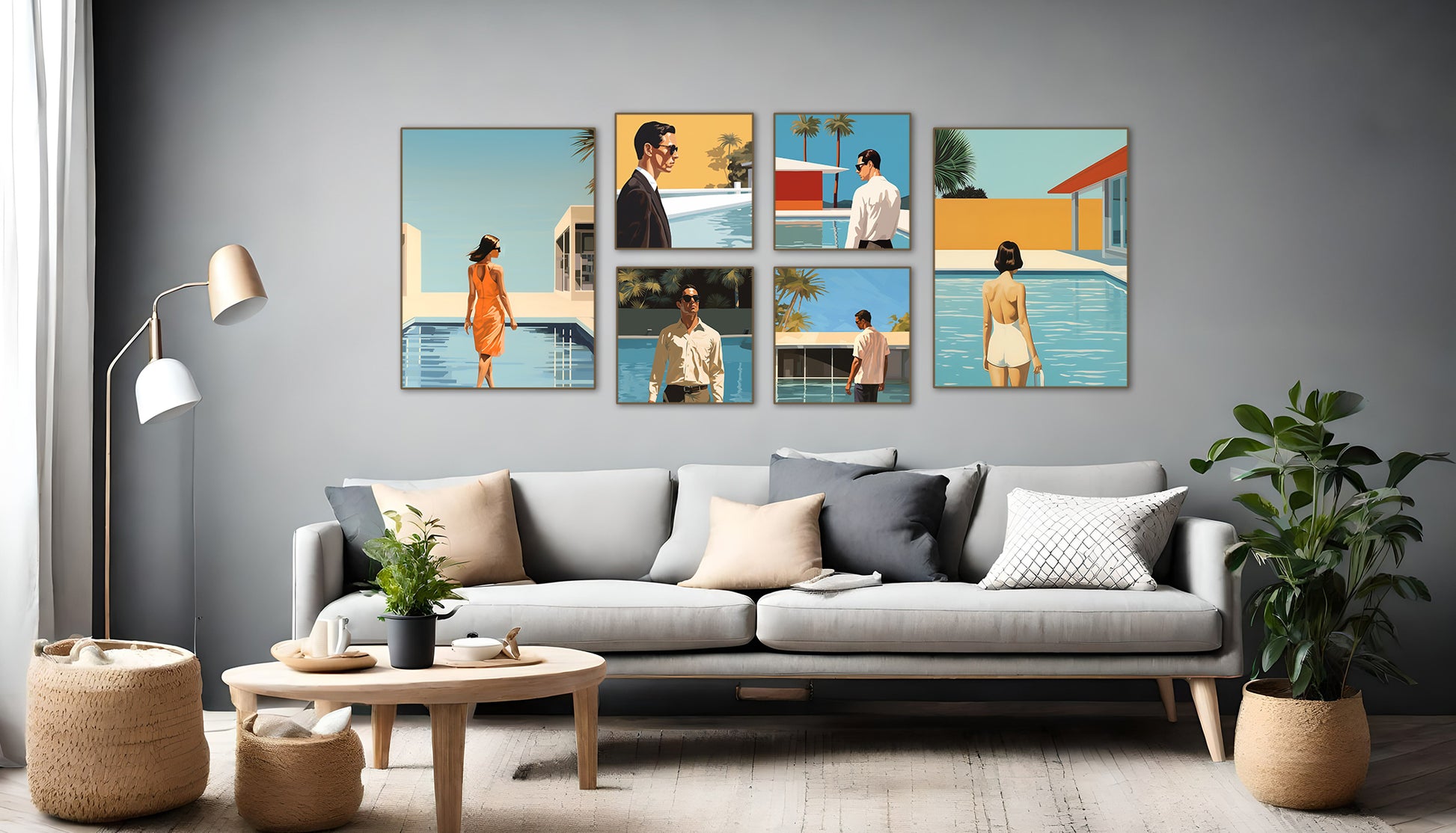 6 quadros: 2x 67,5x90cm, 4x 47,5x47,5cm