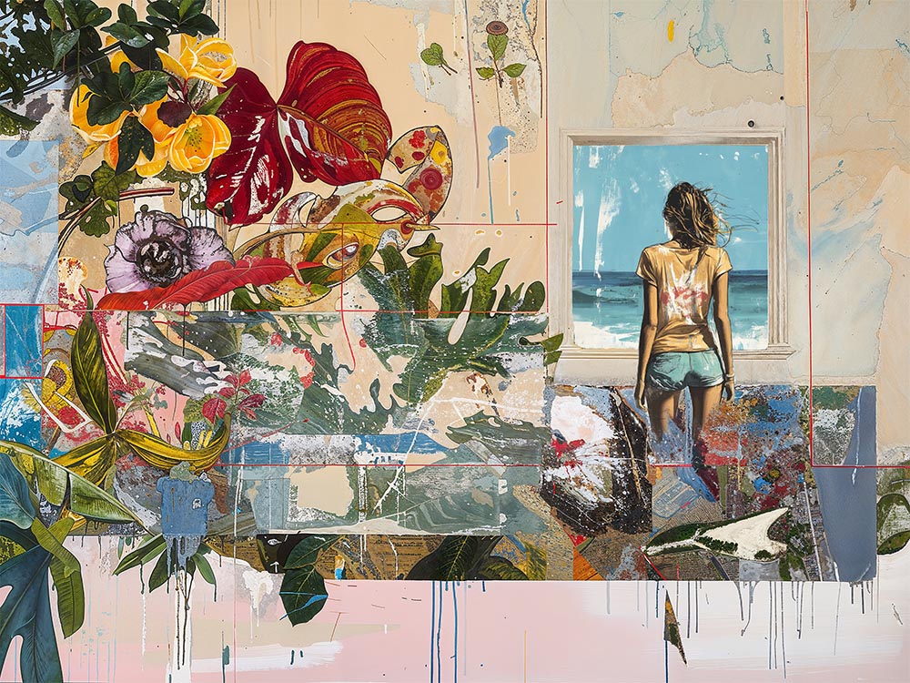 A pintura "Garota na Janela" traz uma vibe floral e tropical com a leveza do verão e do clima de praia. Perfeita para quem quer adicionar um pouco de frescor e sossego pra dentro de casa.