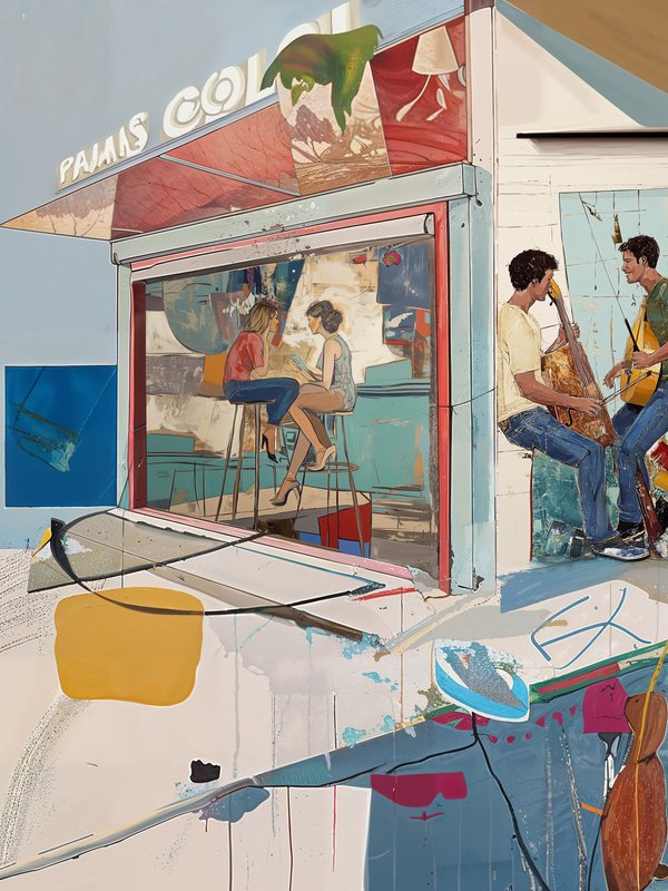 Sinta o ritmo contagiante do "Jazz Music Pub A", uma pintura que transporta você diretamente para a atmosfera descontraída dos pubs cubanos. Com cores quentes e traços expressivos. Um toque de Havana para sua decoração.