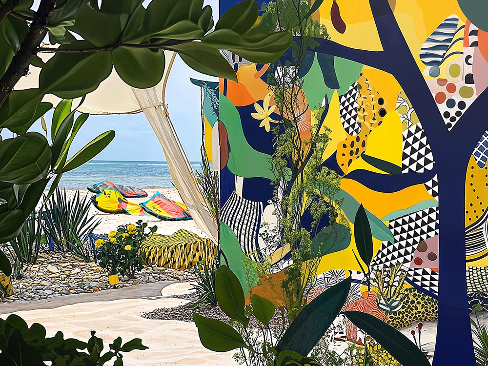 Kite Garden 12 combina texturas e padrões inspirados na natureza, criando uma obra vibrante e cheia de vida. Ao fundo, um cenário de kitesurf e praia traz uma atmosfera leve e descontraída, perfeita para quem ama arte que conecta com o ambiente ao redor. Ideal para dar um toque único e cheio de energia ao seu espaço.