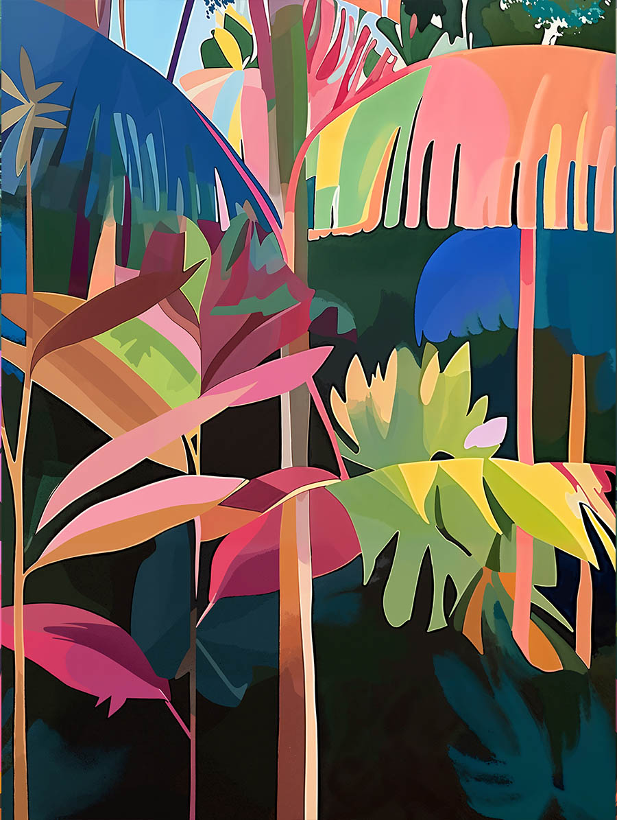 Mergulhe em uma floresta vibrante de cores com Mata Colors 1A. Esta pintura captura a exuberância da natureza através de uma paleta rica e dinâmica, onde tons quentes e frios se encontram em perfeita harmonia.
