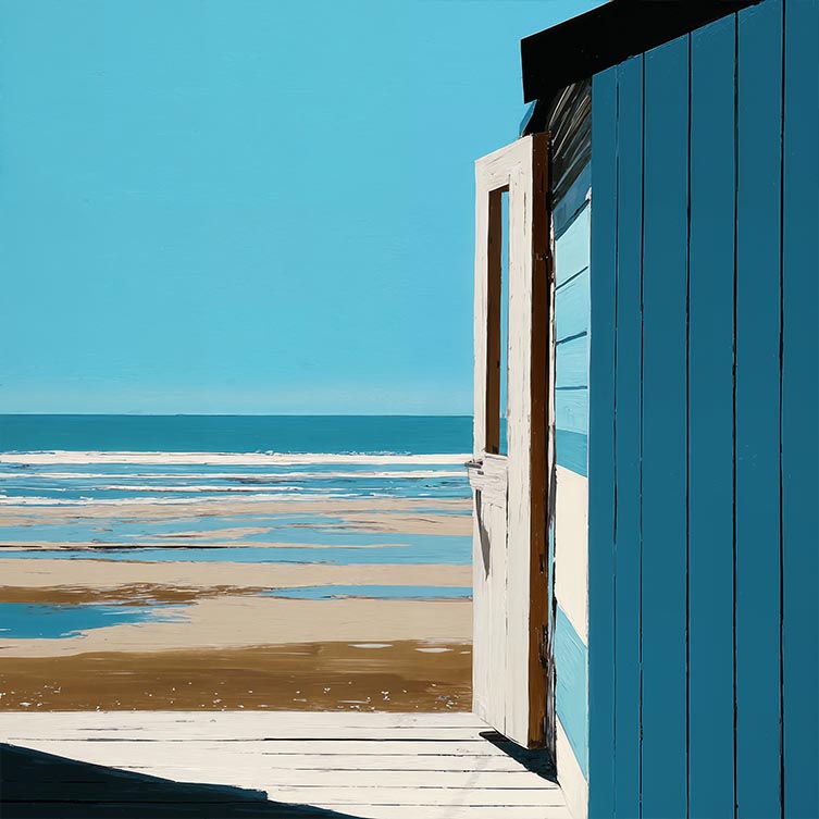 Nice View 1 traz para sua parede a beleza serena de uma praia vista de dentro de uma casa. Essa pintura é perfeita para quem gosta de sentir a brisa do mar mesmo estando em casa.