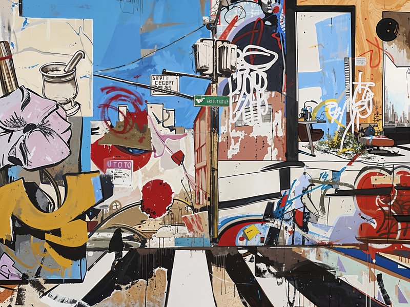 Quadro decorativo que retrata uma cena colorida de rua em um ambiente urbano, ideal para quem busca uma decoração moderna e com personalidade.