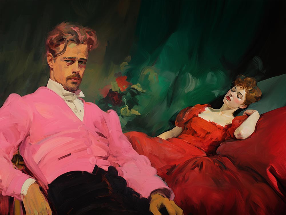Red Velvet é uma pintura expressiva e vibrante que retrata um homem ao lado de uma mulher deitada no sofá, inspirada nas elegantes obras da Belle Époque parisiense do final do século XIX. Com cores intensas e detalhes marcantes, a obra traz um toque clássico e ao mesmo tempo moderno, perfeito para quem aprecia arte com história e emoção.