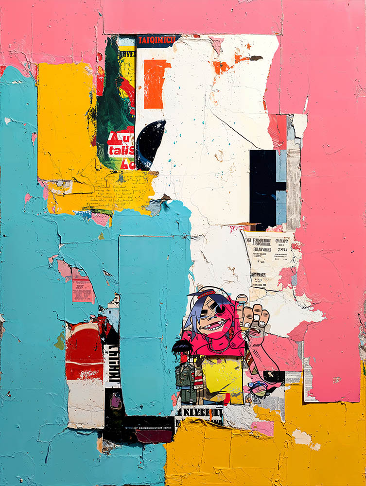 Rusty Gorillaz traz a energia urbana para dentro de casa, combinando cores vibrantes no estilo street art com uma colagem criativa feita a partir de restos de outdoor. Essa pintura pop é perfeita para celebrar a arte de rua e dar um toque moderno e ousado na decoração.