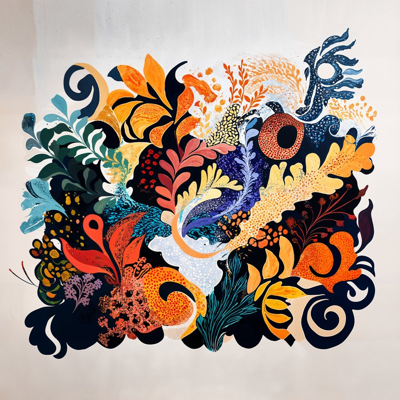 Uma pintura vibrante que mergulha no mundo subaquático, com formas orgânicas inspiradas nos corais marinhos. As cores intensas e variadas criam um movimento fluido que captura a essência da vida oceânica. Perfeita para trazer energia e um toque da natureza para qualquer ambiente.